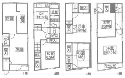 業種相談/1F店舗+2-4F住居仕様/1F38.06㎡+2F39.01㎡+3F39.01㎡+4F30.4㎡/火災保険・保証会社:加入要/ |